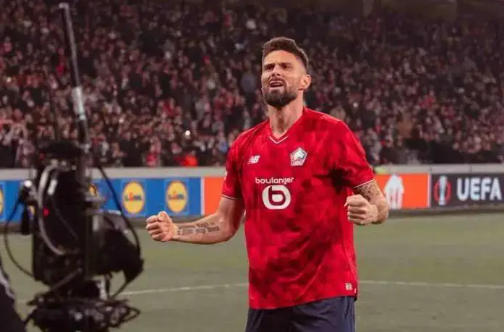 比賽剛開始4分鐘,整個球場的氣氛還略顯沉悶,球迷們或許還在為里爾首回合的失利而憂心忡忡。就在這時,吉魯如同一位經驗豐富的獵手,敏銳地捕捉到了戰機。隊友精準的傳中球如同一顆炮彈般飛向禁區,吉魯高高躍起,憑借著他標志性的強有力頭槌,狠狠地將球砸向對方球門。那一刻,時間仿佛凝固,所有人的目光都緊緊地盯著那顆飛向球門的足球。當足球應聲入網的瞬間,整個球場瞬間沸騰了,里爾的球迷們歡呼雀躍,他們看到了球隊逆轉的希望。