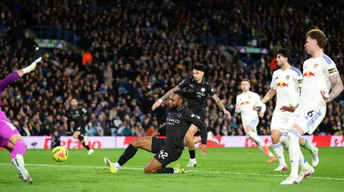 反觀曼城,在下半場采取了更為穩健的戰術,穩固防守的同時,通過中場球員的巧妙組織來掌控比賽節奏。努里和羅德里在中場配合默契,他們就像球隊的指揮官,有條不紊地調度著進攻和防守。曼城還充分利用邊路傳中和角球的機會制造威脅,給利茲聯的防線帶來了不小的壓力。第72分鐘,曼城獲得角球機會,格伊高高躍起頭球攻門,門將如有神助,將這記勢在必進的球神奇撲出,隨后謝爾基和羅德里跟進補射,均被利茲聯防守球員擋出,不過這也充分展現了曼城在攻防轉換時的耐心與精準。